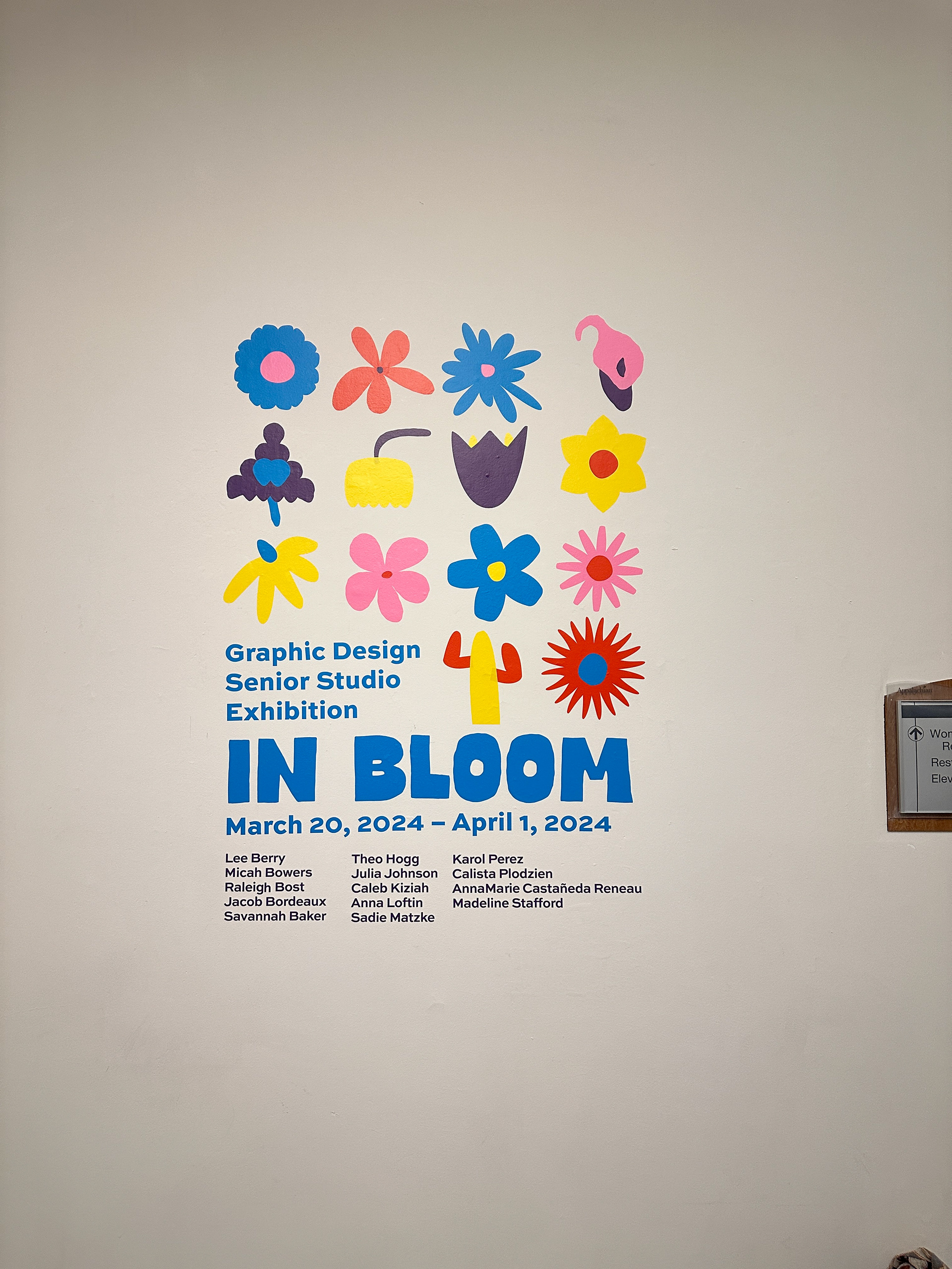 In Bloom was the brand identity developed for the Spring 2024 Senior BFA Graphic Design Exhibition at Appalachian State University. The concept centered around assigning each graduating designer a unique flower that held personal significance, ultimately coming together to form a vibrant, diverse bouquet. This visual metaphor represented the individuality of each designer while celebrating the collective strength and diversity of our graduating class.
